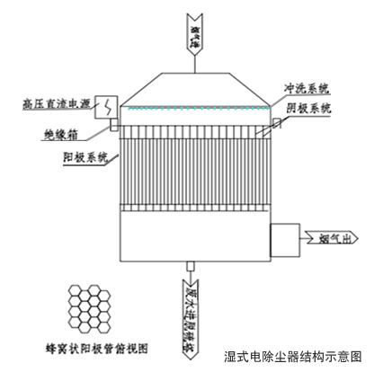 濕電有幾種結(jié)構(gòu)形式,一種是使用耐腐蝕導(dǎo)電材料(可以為導(dǎo)電性能優(yōu)良的的非金屬材料或具有耐腐蝕特性的金屬材料)做集塵極,一種是用通過噴水或溢流水形成導(dǎo)電水膜不導(dǎo)電的非金屬材料做集塵極。 濕式電除塵器還可分為橫流式(臥式)和豎流式(立式),橫流式多為板式結(jié)構(gòu),氣體流向為水平方向進出,結(jié)構(gòu)類似干式電除塵器;豎流式多為管式機構(gòu),氣體流向為垂直方向進出。一般來講,同等通氣截面積情況下豎流式濕式電除塵器效率為橫流式的2倍。